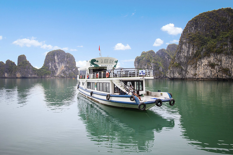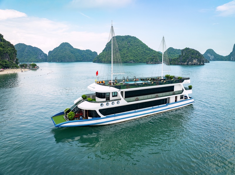 One of the most enchanting Indochinese junk-styled ships in the Lan Ha Bay