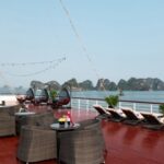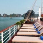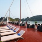 Relax on the cruise. Don’t miss the sundeck area to witness the stunning sunset, join the sunset party and participate in a cooking class featuring authentic Vietnamese dishes.