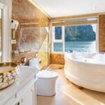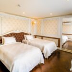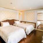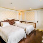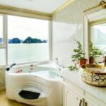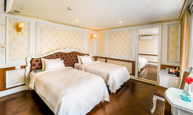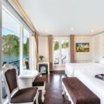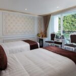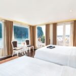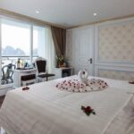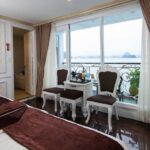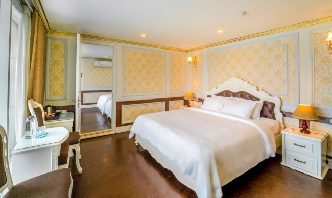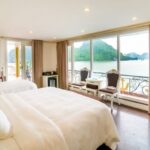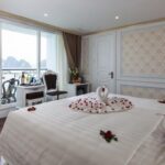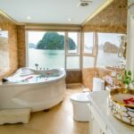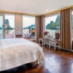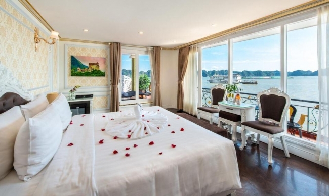 Luxurious and well-furnished cabins, all have a private balcony from which you can savor yourself in the beauty of Halong Bay