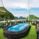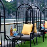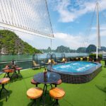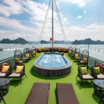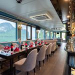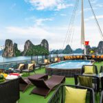 Activities: Dragon Dinner Cruise sails along the bay adjacent to the mainland to witness the mar velous sunset and the glittering lights of Halong City at night. This special journey includes a sumptuous dinner buffet and captivating music per formances on the unique Sundeck stage.