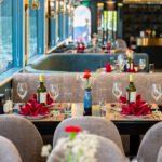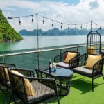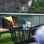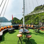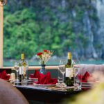 18:45–19:15: Enjoy a light afternoon tea on the Cruise with the beautiful and romantic sunset on Ha Long Bay in melodious music. Our Cruise go through to Bai Chay Bridge, Sunwheel, Bai Tho Mountain, Vincom Ha Long with shimmering panoramic beauty view of Ha Long city at night.