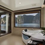 Immerse yourself in the emerald green water of the bay or enjoy the Jacuzzi pool on the Mon Chéri Cruises.