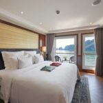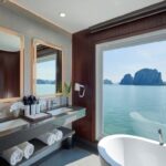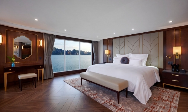 08:50 Breakfast will be served at Elegance Restaurant while the cruise passes by Thien Cung and Dau Go Cave and the Fighting Cock Islet.
