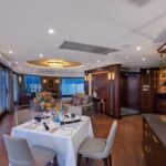 19:00 – 20:30 Savor your premium À La Carte dinner in Vietnamese five-piece Ao dai at Elegance Restaurant, capturing memorable photographs with the onboard manager.