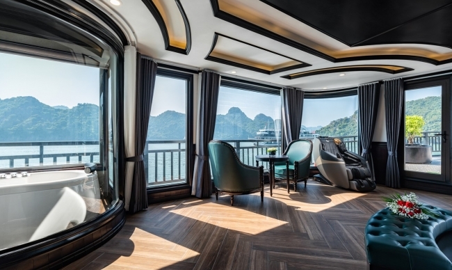 Feature 31 luxurious en-suite cabins, each with a private balcony and Jacuzzi bathtub