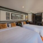 Option 1: Sena Cruise – Luxury Boutique Cruise reaches Three Peach area (if the weather permits). It is time to discover Lan Ha Bay yourselves with your travel buddy sharing a kayak. While kayaking, you will have a brief look at the geology of the Karts Mountains that form a beautiful surrounding