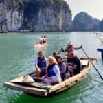 Option 2: We will visit the Dark and Bright Cave – famous for the pristine natural beauty and poetic, attractive seascape of Lan Ha Bay. Here you will take some photos of the romantic, lyrical local see-sights. This is also the best time for tourists to enjoy bamboo boats or swimming – which is an interesting activity to discover the truest beauty of the Limestone Mountains and the blue sky of Lan Ha Bay. Afterwards, visitors immerse in the emerald green water of Lan Ha Bay with exciting swimming activities.