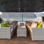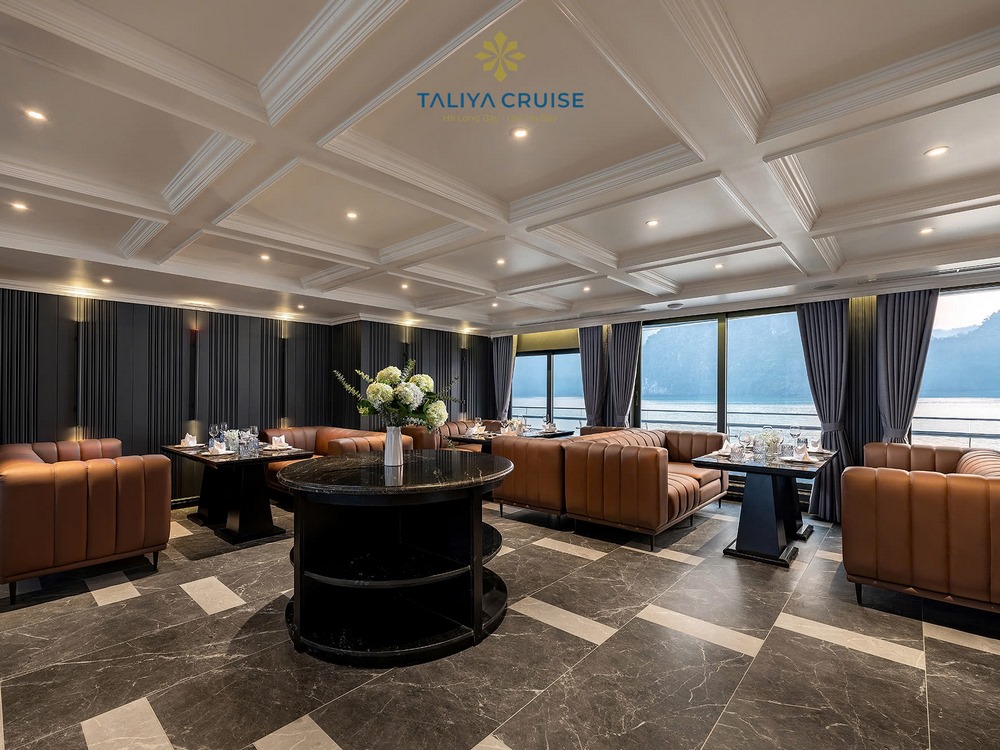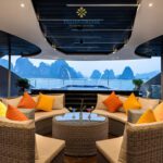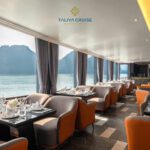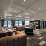 While cruising through a maze of toweling limestone mountains, you revel in the elegance restaurant that full equipped with air-conditioning. A Vietnamese fusion cuisine lunch is served and spectacular seascape is always in view through expanded windows.