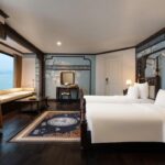 Activities: Tai Chi Lesson, light breakfast, discover Dark & Bright Cave by bamboo boat, check out, enjoy brunch, transfer back to Tuan Chau Marina by tender boat, back to hanoi