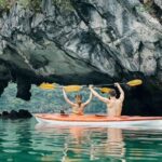 Leisure activities whilst contemplating the serenity of nature in Halong - Lan Ha Bay: swimming, kayaking or boating, etc