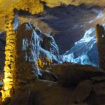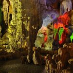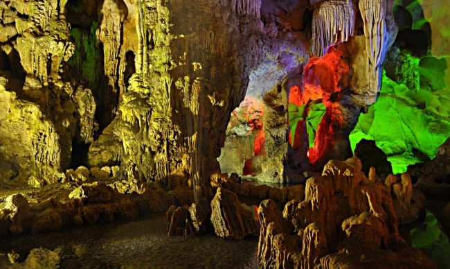 Entering the next part, visitors will feel like standing inside an ancient castle, with massive and majestic architecture. The deeper you go into the cave, the natural lights weakens and everything becomes fanciful, the novel paintings appear mysteriously. At the end of the stone path, the cave is expanded with huge stone columns, sparkling in the colorful electric lights.