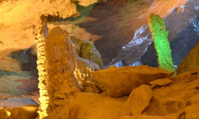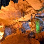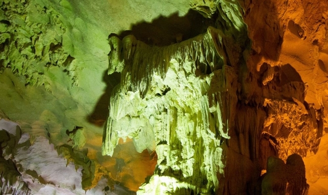 At approximately 25 meters above sea level, the cave comprises two caverns, each as magnificent and fascinating as the other. The first cavern is around 30 meters high known as the waiting room before stepping into the world of fantasy in the second champer. Visitor will follow a narrow stone path from the first cavern to the second in the orange diffused light of electric lighting. Immersed in that fanciful atmosphere, visitors are present at the “Opera House” of flowstones, stalactites, stalagmites and columns forming thoughout millions of years. The meandering pathway around the chamber gives visitors a better view from to different angles, which is perfect for creating a precious photo.