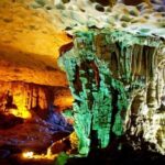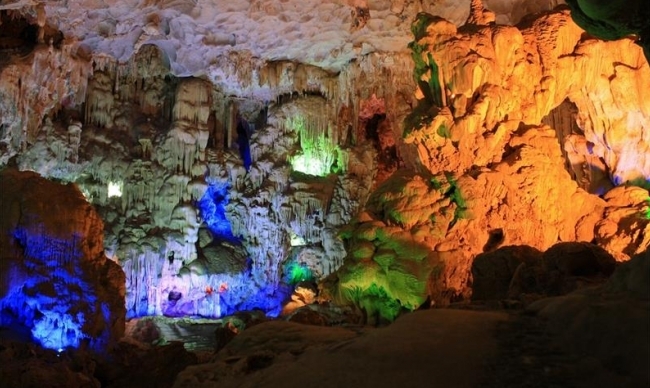 Thien Cung Cave (also known as Heavenly Palace Cave) is located north of Dau Go Island, 4 km from the tourist port. As one of the most beautiful caves on Halong Bay thanks to its huge space area, there are many chambers inside with numerous limestone stalactites and stalagmites in strange shapes.