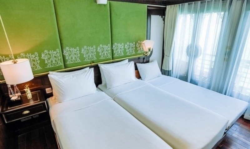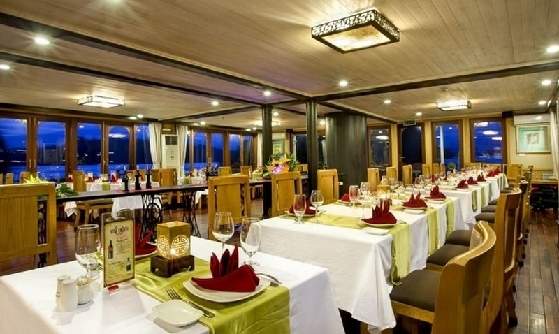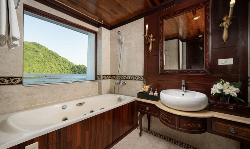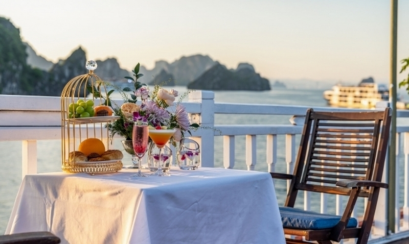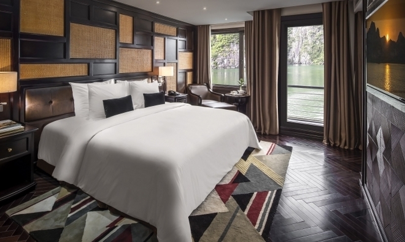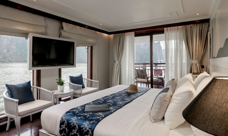 Luxurious and well-furnished cabins, all have a private balcony from which you can savor yourself in the beauty of Halong Bay