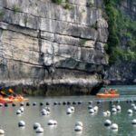Visiting the pearl farm is a very special experience besides enjoying Halong Bay cruises. Travelers will learn about the pearl making process, as well as the characteristics of the colors and shapes of oysters grown here. The pearl growing and handicraft system has been based on Vietnamese traditional experience and Japanese technology. When passing the jetty, visitors will admire the oysters’ cages growing in the clear blue waters of Halong Bay.